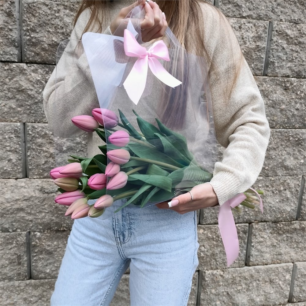 נטו טוליפים, בתיק הגשה מעוטר סרטי סאטן. הצבעים משתנים בהתאם למלאי, ורוד, אדום, כתום, צהוב, סגול. גודל רגיל- 15 טוליפ גודל גדול- 25 טוליפ כנסו לתמונה נוספת. גודל ענק- 35 טוליפ