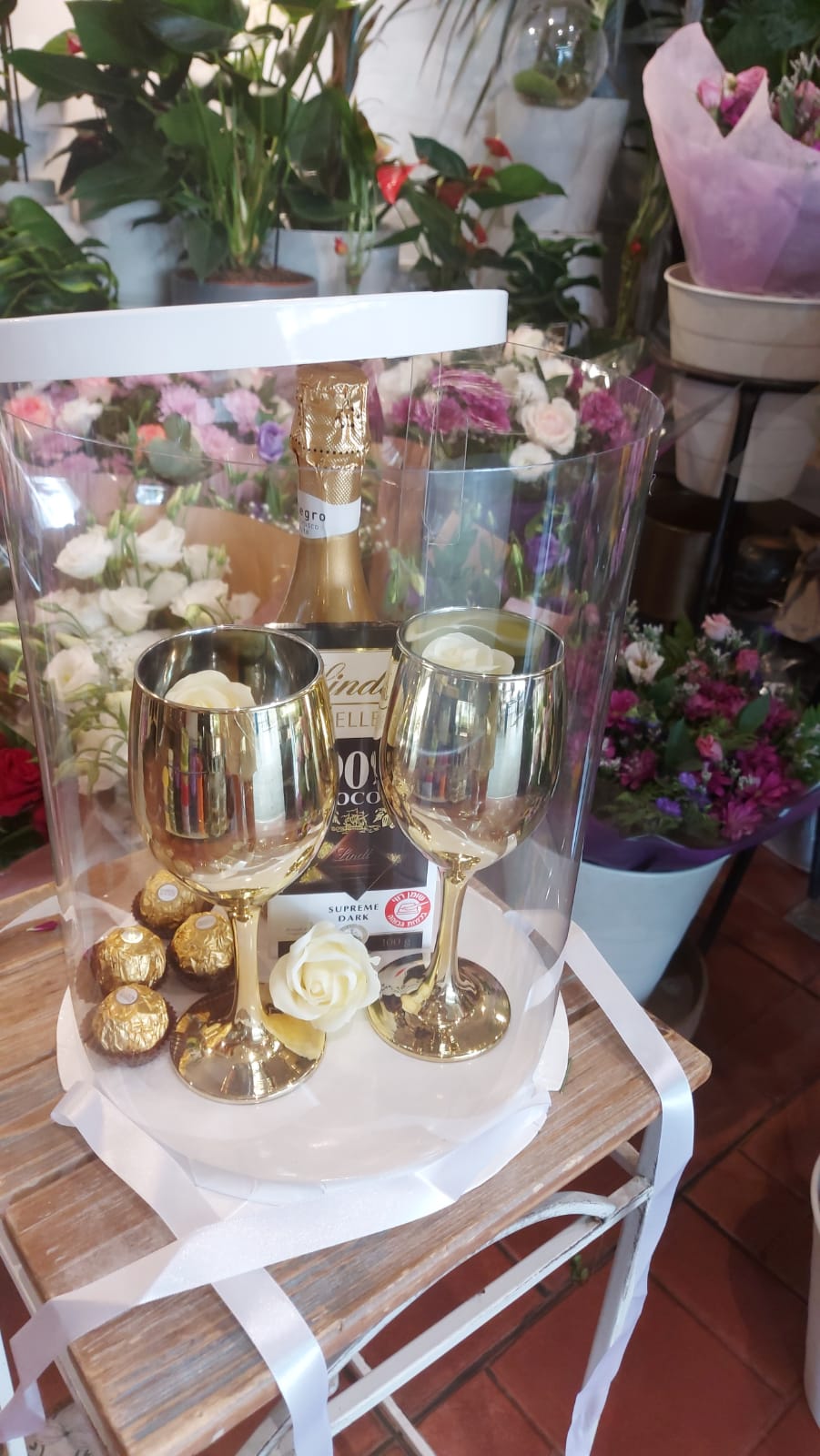 מארז יין כוסות ושוקולד