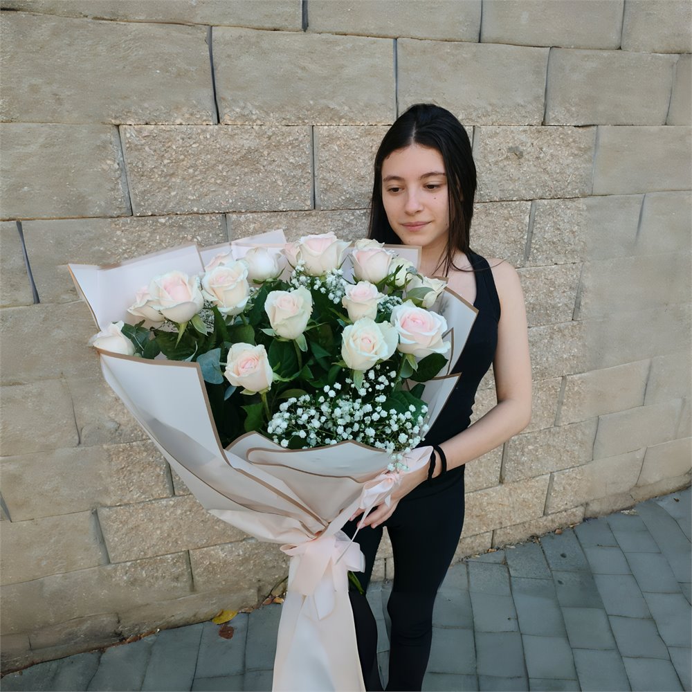 ורדים ורודים בשילוב גיבסנית וענפי קישוט **כנסו לתמונה נוספת**